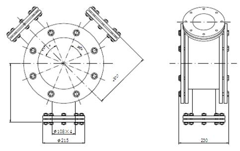 分匯器是一個(gè)三通閥,通過(guò)導向板的切換可使膠球進(jìn)入需要清洗的一側凝汽器中工作。一般一臺機組需兩臺分匯器,其進(jìn)口通徑為DN100,分配口為DN89,膠球投用時(shí)可通過(guò)窺視窗觀(guān)察運行情況。
