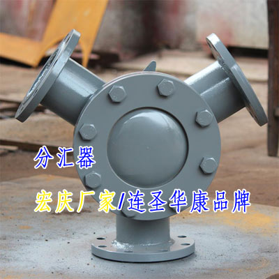分匯器可以將一根循環(huán)管分開(kāi)成兩根獨立的管,比如在裝球器出口一根管路變到兩只噴球器的入口管路,那么分匯器可以很好的將此功能實(shí)現;同樣當把兩根再循環(huán)管合在一起成為一根再循環(huán)管時(shí),比如兩個(gè)收球口的管路匯集到膠球泵的入口管路時(shí),分匯器扮演了同樣的角色。